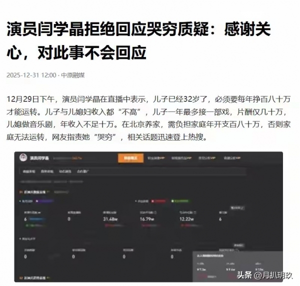 不少网友质疑,作为一位资深演员,闫学晶是否真的理解普通人的生活压力。