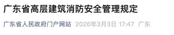 《广东省高层建筑消防安全管理规定》明确,4月1日起严禁将电动车或其电池带入高层建筑电梯轿厢,禁止在疏散通道、楼梯间、安全出口等区域停放充电。