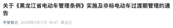 而超期临牌车辆多为过渡期内的超标车,随着过渡期结束,其路权也随之终止。以黑龙江为例,按照《黑龙江省电动车管理条例》,非标车过渡期有效期至2026年4月30日,期满后全面禁止非标电动车在道路上通行。