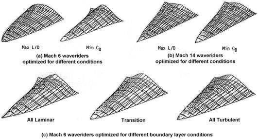 "驭空戟-1000"采用乘波体,但是挺特别的气动构型。大多数乘波体都是某种箭簇形:平面形状大体为三角形,相对扁平,上部有浅隆起,可能底部平坦或者上凹。