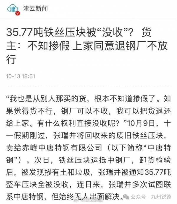 截至目前,那35.77吨铁丝压块仍被扣在中唐特钢内。