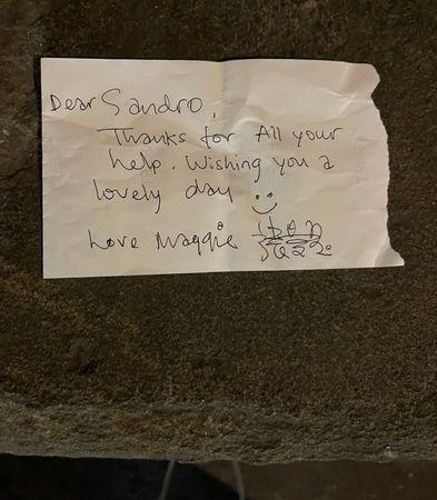不只如此,张曼玉更以英文写下纸条和签名,上面写着「谢谢你的帮忙,希望你今天过得愉快」。网友回想起来还是觉得十分美妙:「我知道可能我只是出现在她一天的某个人,但是我还是很开心,我是个幸运的人。」