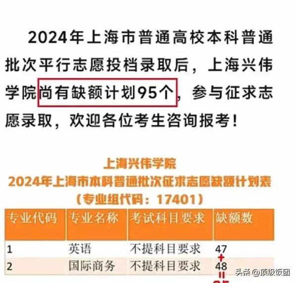 一则新闻将"天价学费"话题推上了风口浪尖,上海一所名为兴伟学院的民办高校,2024年秋季招生遭遇"滑铁卢",95个招生计划,竟然无一人报名,消息一出,网友们纷纷炸开了锅,有人调侃这是"史上最牛招生广告",也有人质疑这所学校究竟有何"过人之处",竟敢如此"自视甚高"