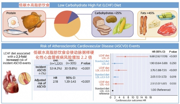 2024年,另一项发表于《美国心脏病学学会杂志》的研究也证明了"动物性低碳饮食"的危害。研究表明,长期采用低碳水、高脂肪的饮食模式(如生酮饮食),可能导致"坏胆固醇"水平显著升高,并增加心血管事件风险。具体来说,这种低碳饮食会使动脉粥样硬化性心血管疾病发病风险增加2.2 倍!