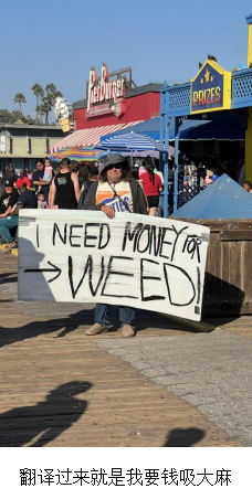 而整座城市变成了一个巨大的猫鼠游戏,因为洛杉矶要举办奥运会和世界杯,政府觉得,如果全世界的人来到我们阿美利卡,看到的就是一副这样的景象,那肯定是不行的。于是政府开始清理了,在离城市很远很远的地方划一片地对他们说,你们去那里住吧。但是过了一阵,又会有零零散散的人在市中心住帐篷,于是一边忙着驱赶,一边忙着换地方,周而复始。这些人往往可以称为亡命徒,因为他们已经在为生存而挣扎了,可以为了生存做一切事情,可能是杀人,可能是抢劫,可能是……这里就是丛林法则,这也导致了这片区域成为大家口中所谓的"不安全街区"。