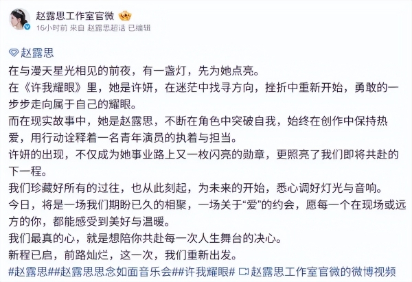 她同时在现场宣布--个人新工作室正式成立,为接下来的演艺活动揭开新篇章。
