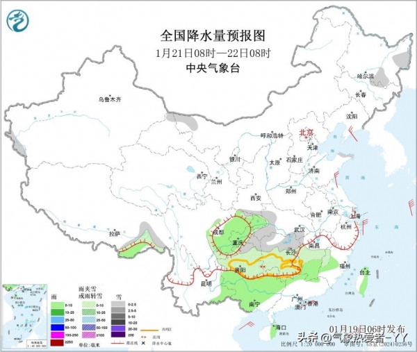 预计20-21日,江淮,江南大部地区有雨雪天气过程,湖北大部,苏皖南部,贵州,湖南,浙江,上海以及江西北部有雨夹雪或小雪,湖北东南部,湖南中北部有中到大雪。而湖南中南部,贵州大部有冻雨。