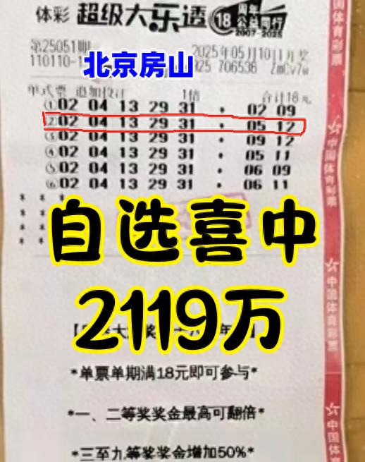 在彩民们翘首以盼的时刻,5月10日星期六,体彩超级大乐透第25051期开奖结果揭晓,开出号码02、04、13、29、31 + 05、12 。令人瞩目的是,北京市房山区闫村镇紫燕南路开古庄绿海美食城北门的1110040195体彩实体店,诞生了一位超级幸运儿!