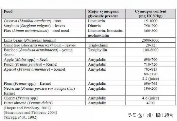 常见食物中氰苷的含量,车厘子中氰苷含量极低