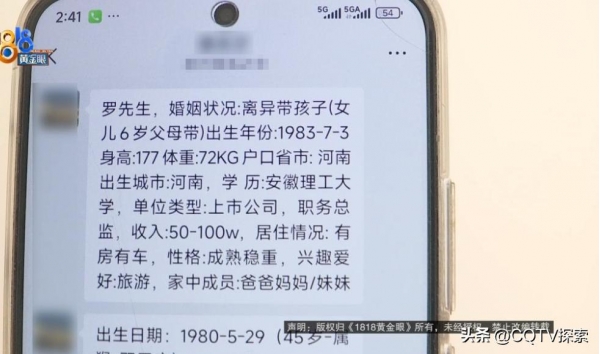 邱女士告诉记者,当时自己说的很清楚,希望对象年龄差在10岁以内,自己是天秤座的,有点看颜值,所以要好看一点的,在杭州有房有车,工作稳定。