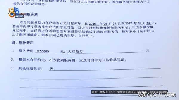 但邱女士都不是很满意,婚恋的工作人员告诉邱女士,她说:你前面的都不满意,是因为钱没有交够,你如果钱交的多的话,那个资源肯定就会偏向你。