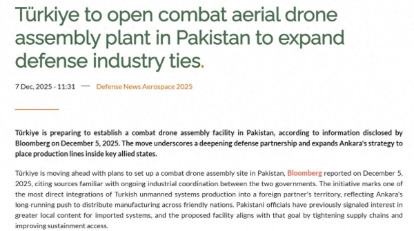 在土耳其传出有心放弃S-400,重新向美国靠拢,拿回100架F-35的背景下,近期美国"Army Recognition"网站又援引彭博社消息,称巴基斯坦正在和土耳其合作发展军用无人机,并计划在巴基斯坦建设组装工厂,这就和大家的预期有点不一样了。