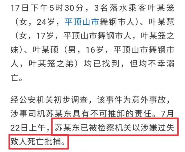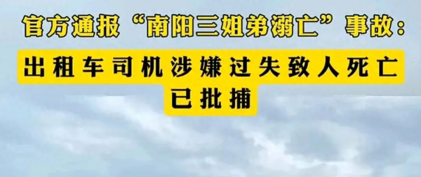 南阳三姐弟坐出租车被水冲走后溺亡,唯独司机一个人脱险。经官方调查后,事情虽然是个意外,但司机罪责难逃,目前因涉嫌过失致人死亡被批捕。