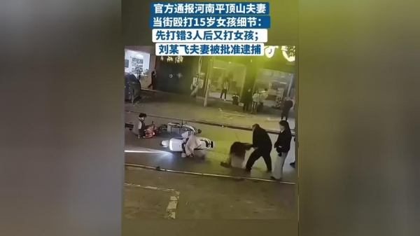 2026年2月19日19时40分,丁某乐(女,15岁)与其弟丁某洛(男,12岁)骑二轮电动车到茨芭镇东坡东路一零食店购买零食,途中与骑二轮电动车的杨某(女,65岁)碰撞,双方发生口角。杨某电话联系其子刘某飞前来现场。19时45分,刘某飞与妻子韩某娜到达现场后,误认为在场人员郭某(女,27岁)、张某凡(女,38岁)、薛某源(男,15岁)辱骂其母,遂对三人进行殴打。发现打错人后,又对丁某乐进行殴打。19时48分,郏县茨芭派出所接派警后,迅速出警赶赴现场进行处置,将刘某飞和韩某娜传唤至派出所进行调查。