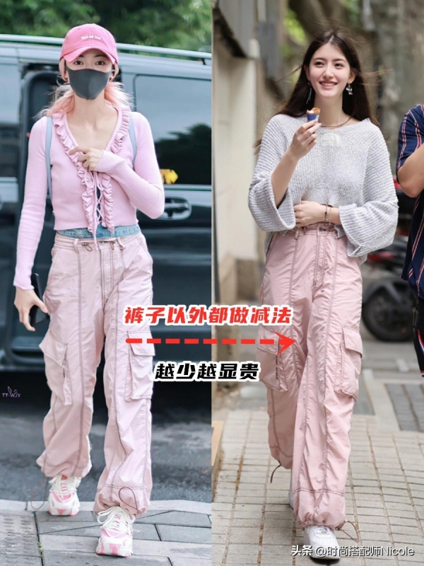 这种设计往往给人感觉是"我把所有流行元素都穿身上了,快看我!",显得用力过猛,反而透着一股不自信和品味匮乏的廉价感。这时候,只要保留一件潮流款,其余都简单化就能逆风翻盘。▼▼