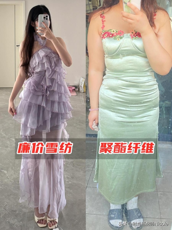夏天谁还没几条裙子呢?但裙子材质选不对,仙女也能变村姑!首选就是避雷廉价雪纺、薄透涤纶、硬邦邦没型的棉布。那些又薄又透、静电满天飞、印花模糊不清的雪纺/涤纶裙,风一吹贴在身上,廉价感挡都挡不住。