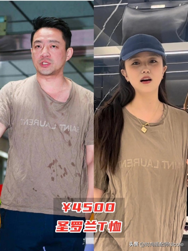 就像是这件售价4500元的T恤,宽松的领口,肩线掉到胳膊肘,腰身完全消失……哪怕贵为奢侈品,穿起来依旧显得没精神、不利落,透着一股"不修边幅"的颓气。▼▼
