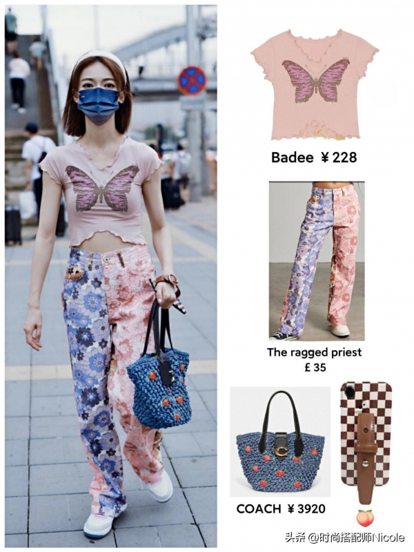 一身穿搭又是蕾丝又是水钻,又是印花又是荷叶边,各种元素胡乱拼接,让人眼花缭乱,完全找不到重点。这种"大杂烩"式的设计,只会显得杂乱无章,必翻车!▼▼