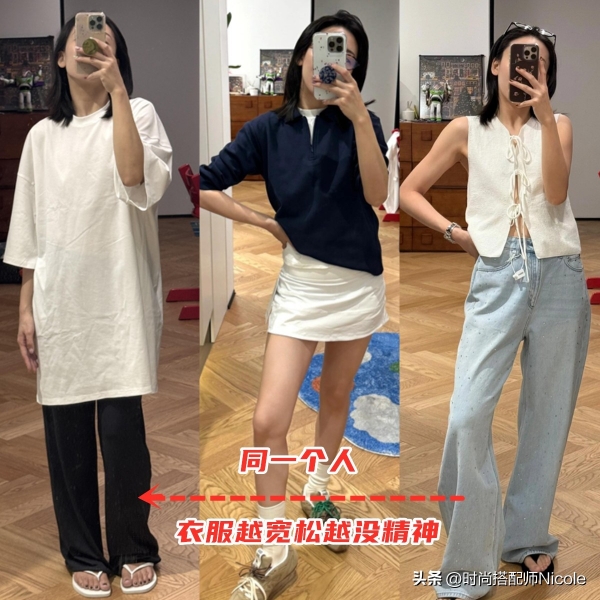 盲目追求宽松感?小心直接穿成"流浪汉风格"!松松垮垮的衣服不仅显胖10斤,还会让你拥有"身无分文"的穷酸感。