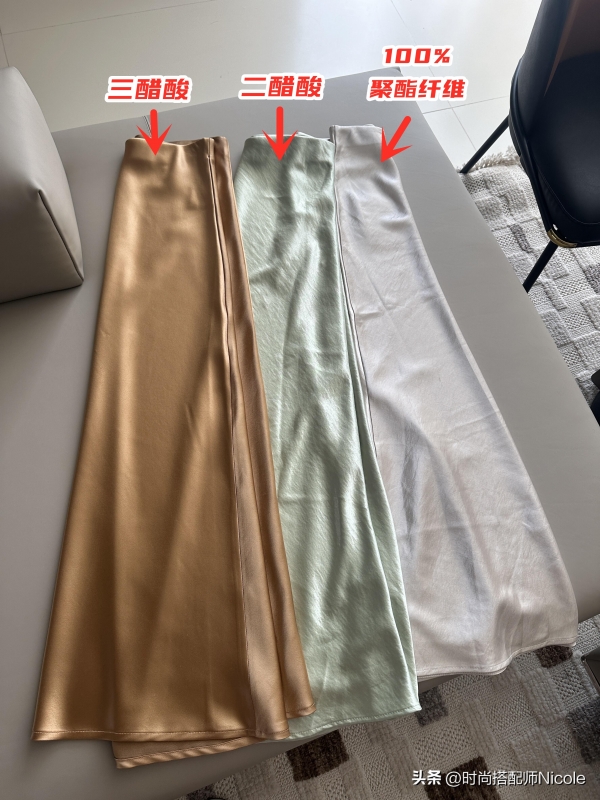 其次,真丝平替"醋酸"更好打理,价格也更友好。表面有细腻光泽,触感丝滑冰凉,透气性一流,做连衣裙、半身长裙特别显气质。