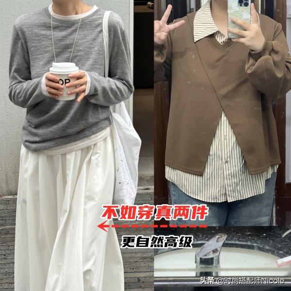 喜欢穿玩假两件叠穿的姐妹要注意了!乱选假两件不但不显时髦,还会让你的穿搭看起来更"穷酸"!▲▲
