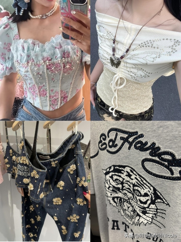 更要命的是,这些堆砌的装饰物(特别是闪亮亮的塑料水钻、粗糙的蕾丝、劣质的金属铆钉)本身质感就差,直接把衣服的廉价本质钉得死死的。