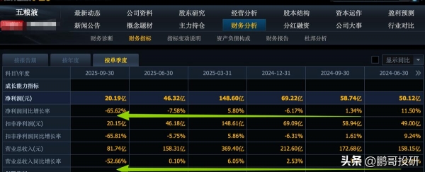 五粮液就非常惨了。第三季度,收入下滑53%,利润下滑66%,也就是说五粮液的酒几乎卖不动了。