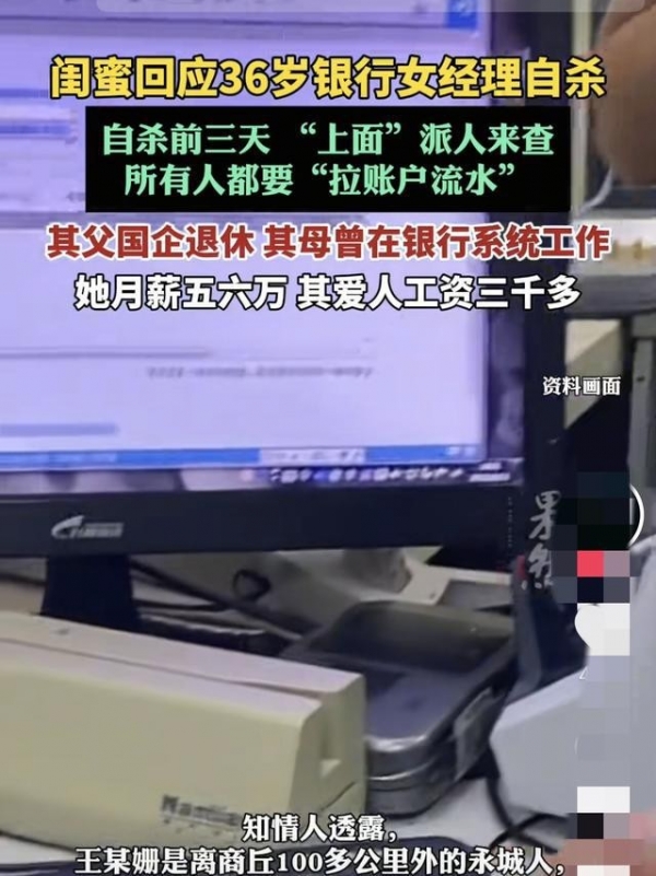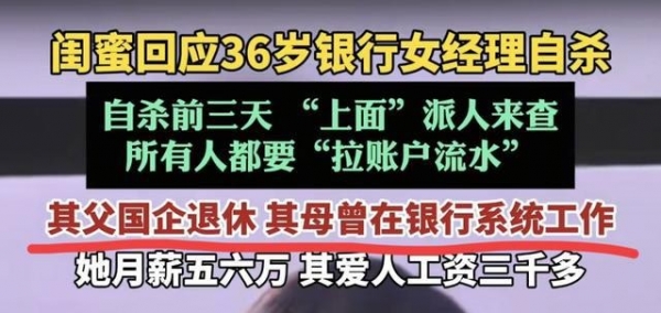 银行总行发现异常交易派人查,她知道瞒不住,在查账前几天选择自缢结束生命。