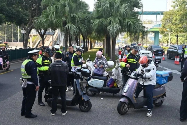 近期,抚州市公安局交管支队聚焦群众反映强烈的非标电动自行车、电动三四轮车突出交通问题,持续在全市范围内开展专项整治行动,集中针对闯红灯、逆行、不佩戴安全头盔、无牌套牌、非法改装等突出违法行为进行严厉查处,特别是针对"非标"电动车不按规定使用的行为进行严肃处理。