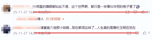 "连女明星的婚姻都这么的不堪,这世界着实是一个巨大的草台班子"、