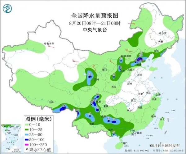 根据中央气象台的最新预报,近期我国多个地区将迎来强降雨天气。特别是在8月19日至20日,内蒙古中部、甘肃东部、陕西北部等地将出现大到暴雨,局部地区甚至可能出现特大暴雨,降水量可达100至180毫米。这种强降雨天气可能会引发洪涝灾害,给当地居民的生活造成不便。