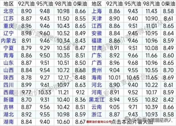 今年第6次油价上涨后,油价回落下跌了:在上周油价实现了今年第6次上涨之后,新一轮油价重新变跌了,在上周油价已经降到270元/吨。随着上周六国际油价继续下跌,美国原油价格来到96.57美元/桶,布伦特也跌到95.20美元/桶,这今天的跌幅继续增加135元/吨,近期统计已经连降3天。这让油价要回落大跌超400元/吨,按照升计算就是大跌超过0.31元/升。