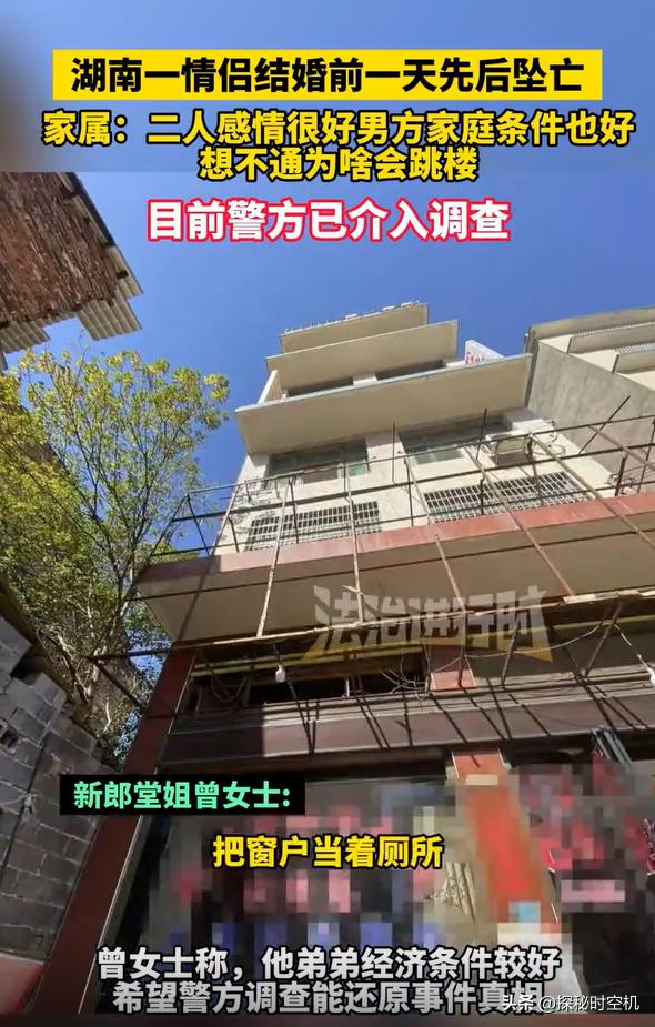湖南双峰县一对即将在11月25日举行婚礼的情侣,居然在24日清晨先后坠楼身亡,时间仅相差1小时……