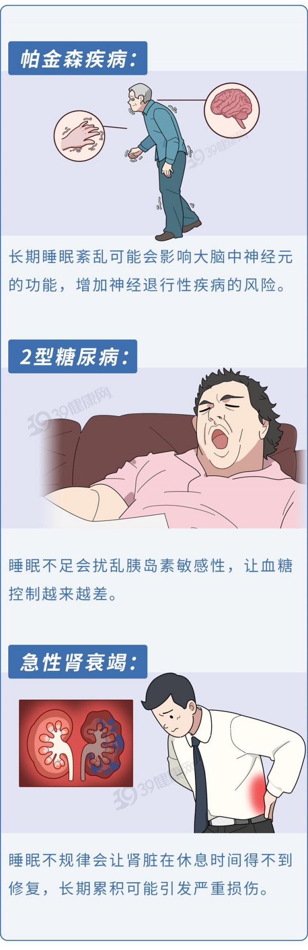 其中92种疾病里,有20%以上的患病原因,都可以直接归咎于"没睡好",典型的包括↓