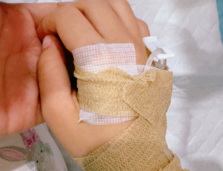 谢娜还分享了照片,虽然没露脸,但那小小的胳膊,扎着针的痕迹,都能让人感受到她当时的心情。