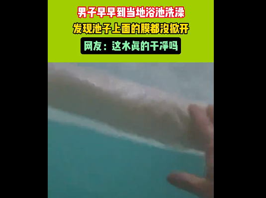 视频中,男子早早到当地浴池洗澡,发现池子上面的膜都没掀开,网友:这水真的干净吗?