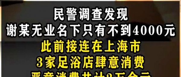 上海谢某足浴店连点四技师消费三天,报警白嫖场面太离谱,网友:这操作我没见过
