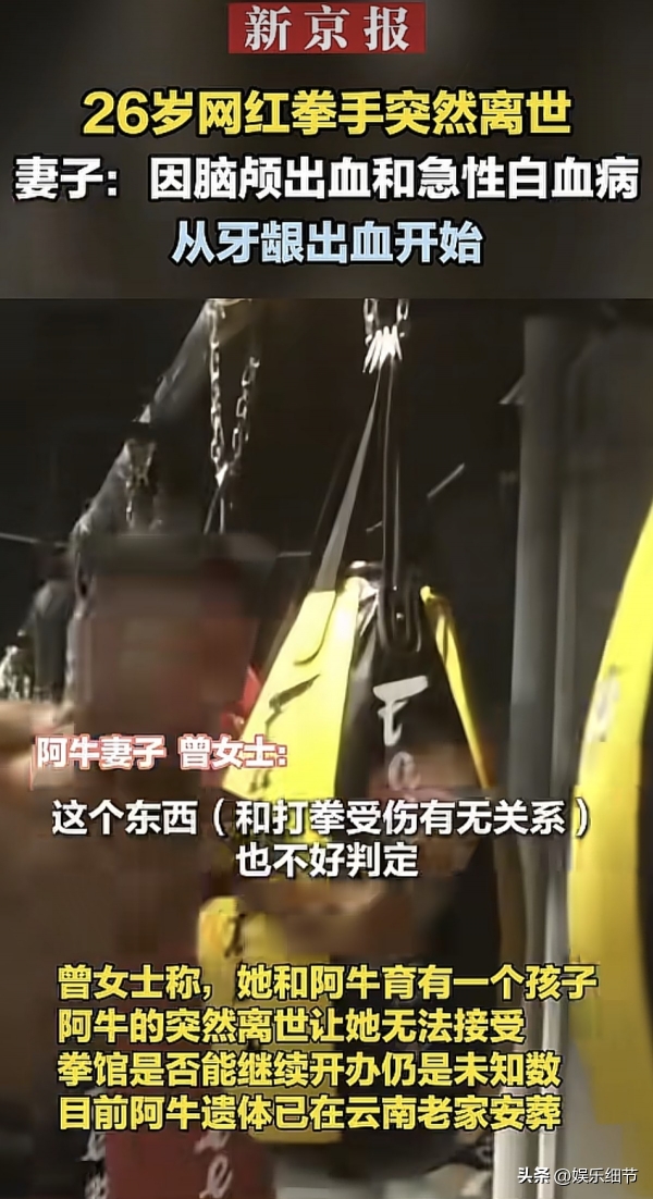 不少网友对阿牛的离世感到很突然,有网友猜测,阿牛打拳击的身体应该很好,难道是在拳击比赛中出了意外吗?