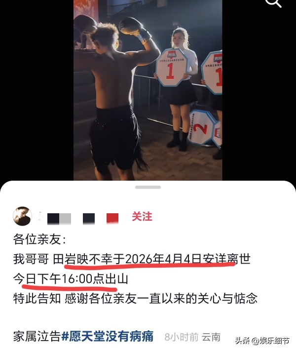 4月5日,噩耗传来,网红拳手阿牛因突发疾病而去世,年仅26岁。