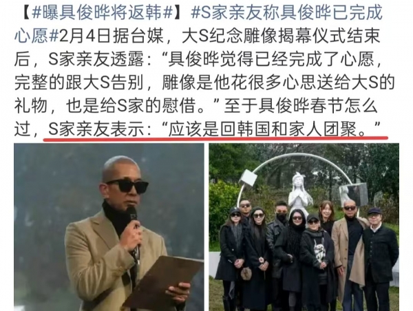 对于网上的质疑,具俊晔没有回应,有S家亲友表示,具俊晔春节可能会回韩国和家人团聚。