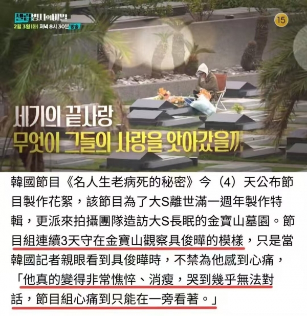 因为具俊晔在大S墓前录综艺,这个行为被许多网友指责,若真的爱她,就不应该打扰她,加上具俊晔多次去看大S墓碑的照片,流传了出来,顿时引发热议。