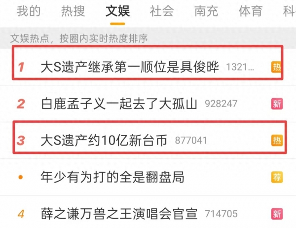 2月10日,大S遗产登上了多个热搜,顿时引发争议,关于遗产的第一顺位继承人,以及金额大小等等,让很多网友感到好奇,并对此展开了激烈的讨论。