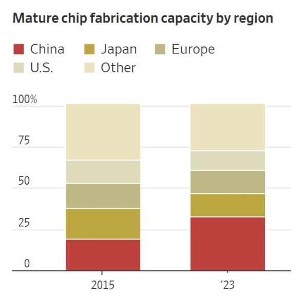 其二是半导体领域。报道指出,目前中国占据全球约三分之一的成熟制程半导体产能,这类芯片虽生产难度低于尖端芯片,却是汽车、消费电子和国防等行业的关键组件。为实现自给自足,中国已投入数十亿美元建设半导体制造能力。