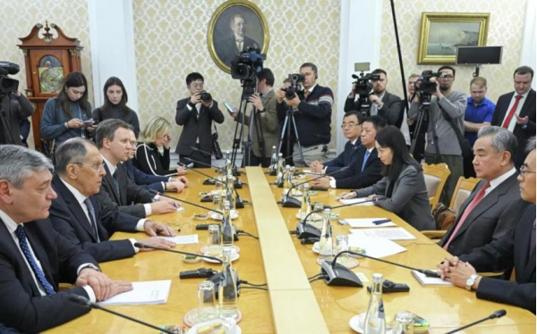 首先是在与俄罗斯联邦安全会议秘书绍伊古的会晤中,王毅外长再次强调了中方的一贯立场,即中方支持一切有利于争取和平的努力,支持达成全面、持久的和平协议,并将继续就此同俄方保持战略沟通。