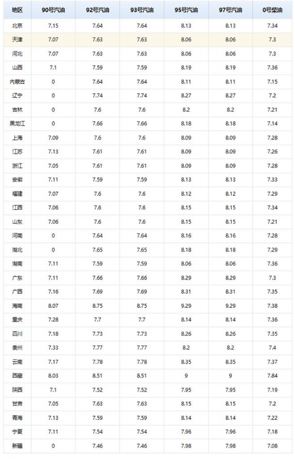 附:全国主流92/95号汽油以及0号柴油价格
