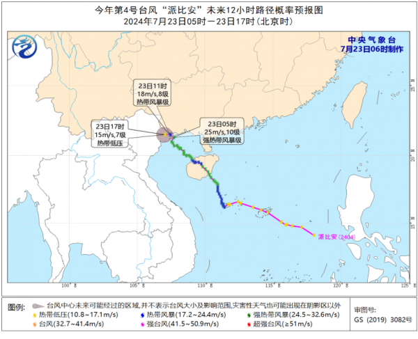 中央气象台7月23日6时发布台风蓝色预警: