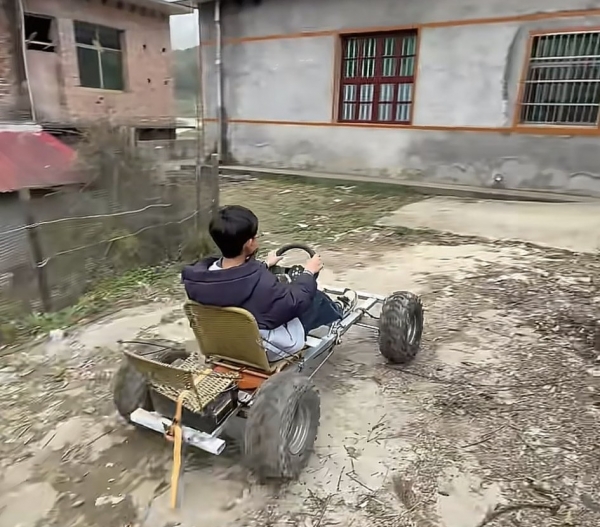 会动手的人,废旧件也能拼成硬通货。不飙车不炸街,造的是实用代步。车辆限速30公里,只在村内短途用。车架加固,续航约50公里,主打安全好用。