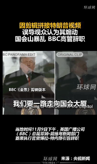 BBC两名高管辞职,因剪辑拼接特朗普视频,"使其看起来似乎在煽动国会山暴乱"