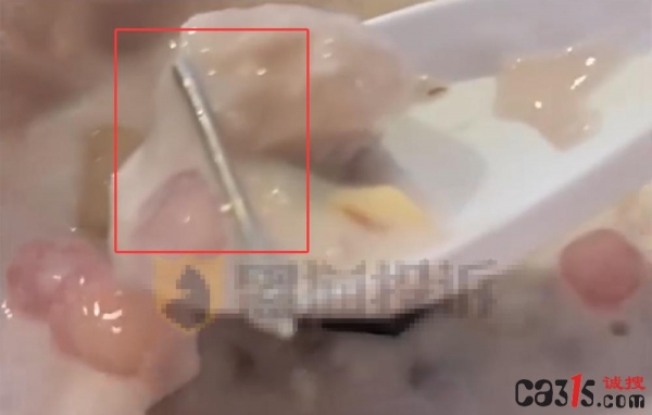 据消费者小吴(化名)反映,她在鲜芋仙南京金沙井店花费27元购买了一份"三芋米乳冰"外卖。食用过半时,突然发现芋泥中混入了一根完整的铁棍。她立即拍摄视频留存证据,并联系店家指出:"如果不小心吞食,可能会有生命危险。"