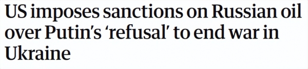 特朗普政府日前宣布,鉴于普京拒绝结束这场毫无意义的战争,美国财政部将对俄罗斯两家最大的石油公司进行制裁,它们为克里姆林宫的战争机器源源不断地提供资金。